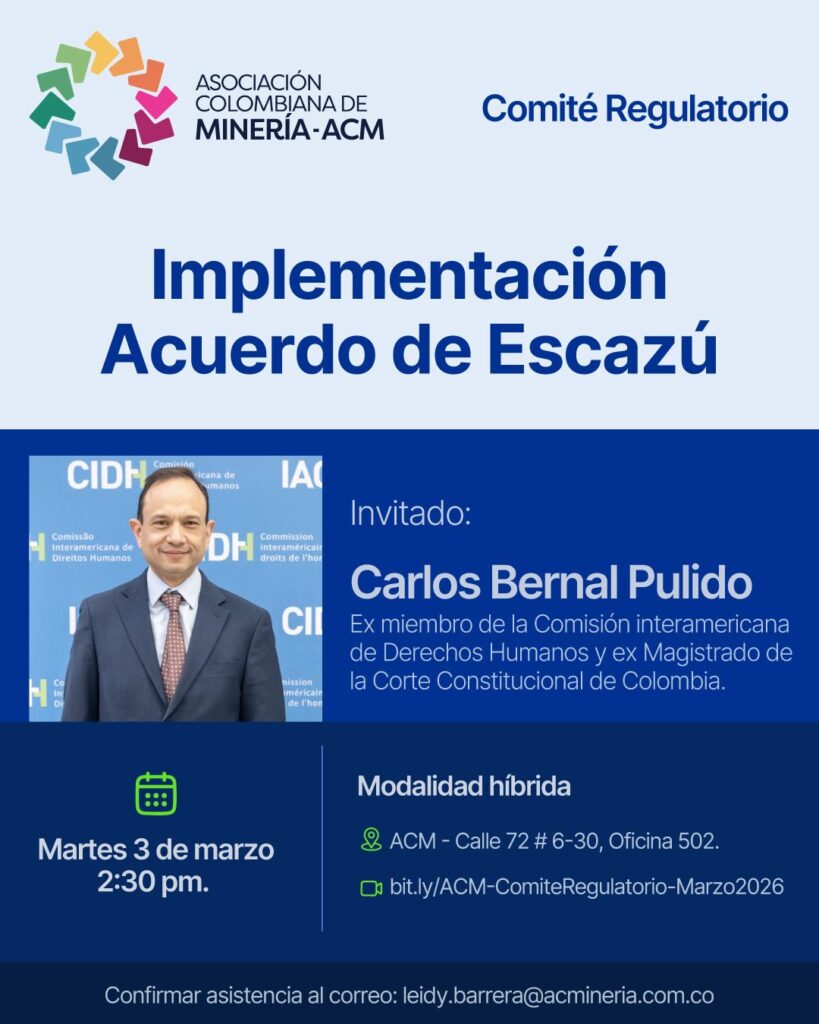 Comité Regulatorio (marzo 3 de 2026) Fecha • 5 marzo, 2026 TEMA: Implementación Acuerdo EscazúINVTADO: Carlos Bernal Presentacuón CBP – Implementación Acuerdo EscazúDescarga