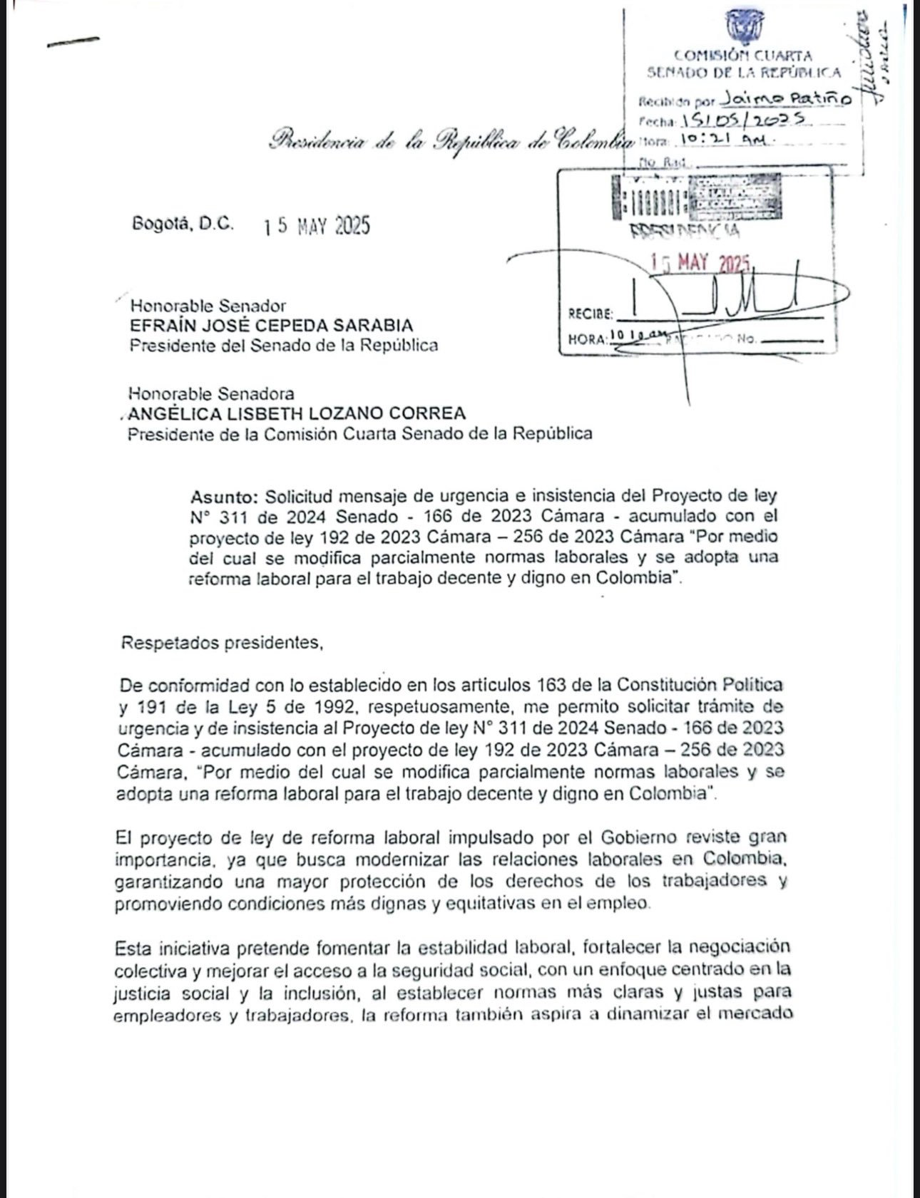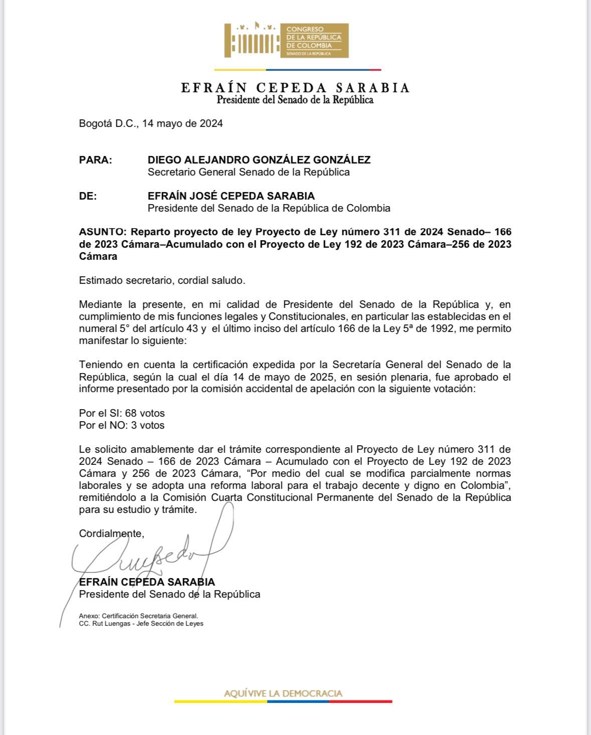 Aprobación apelación en Plenaria de Senado: 14 de mayo de 2025