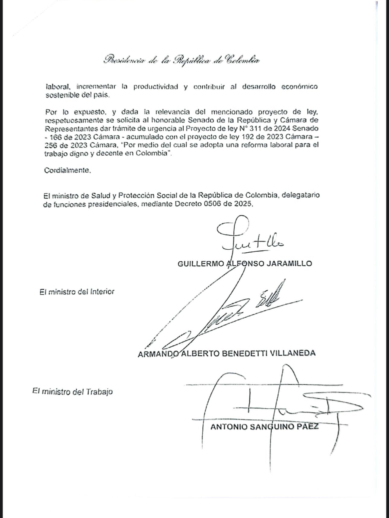 “Por medio del cual se adopta una reforma laboral para el trabajo digno y decente en Colombia”.