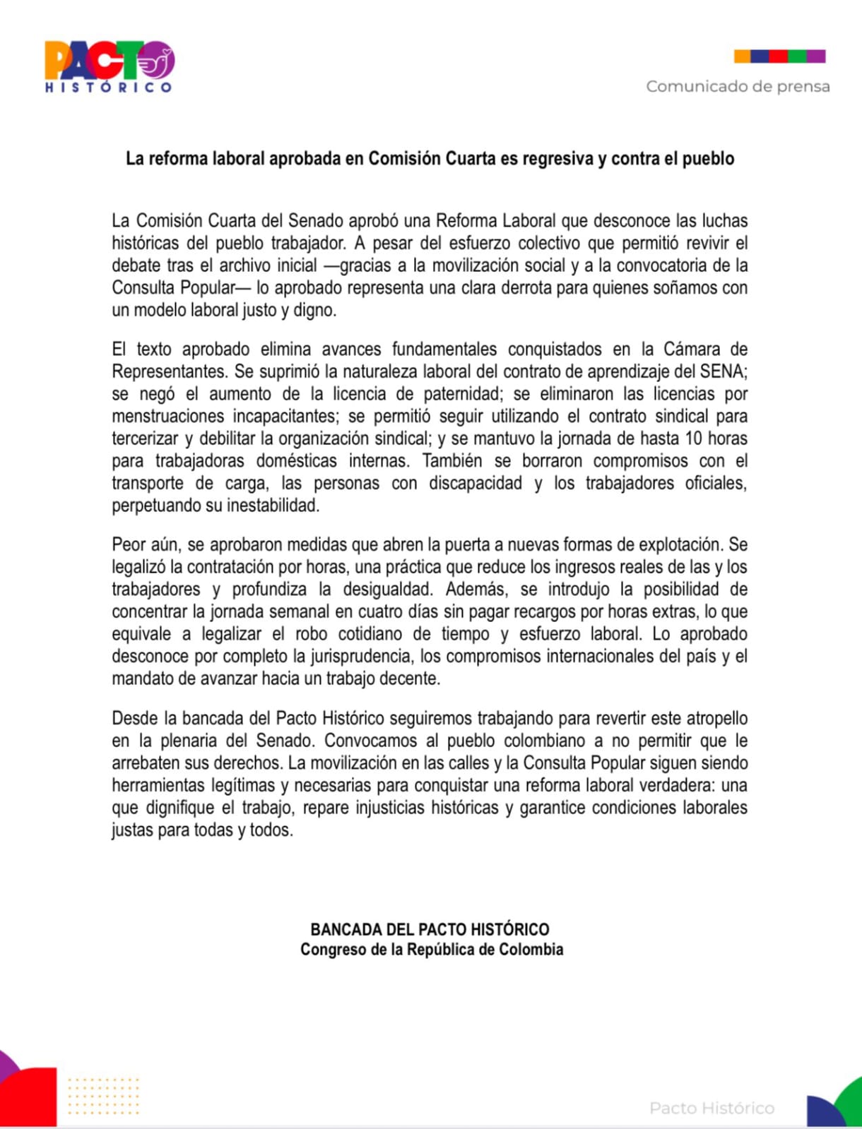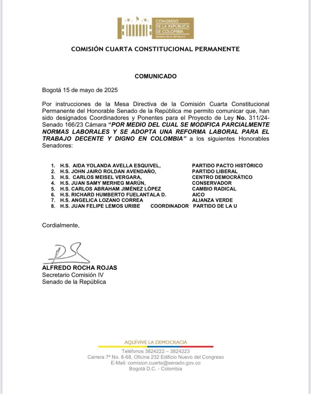 Aprobado Tercer debate en Comisión Cuarta de Senado: 27 de mayo de 2025